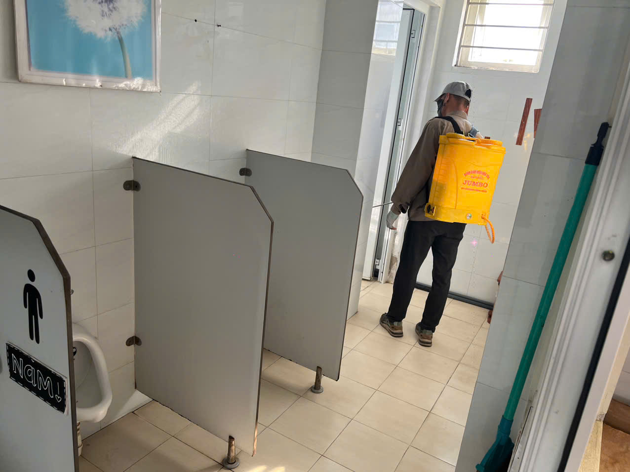 (Phun thuốc tại các lớp học) (Phun thuốc tại các nhà vệ sinh)